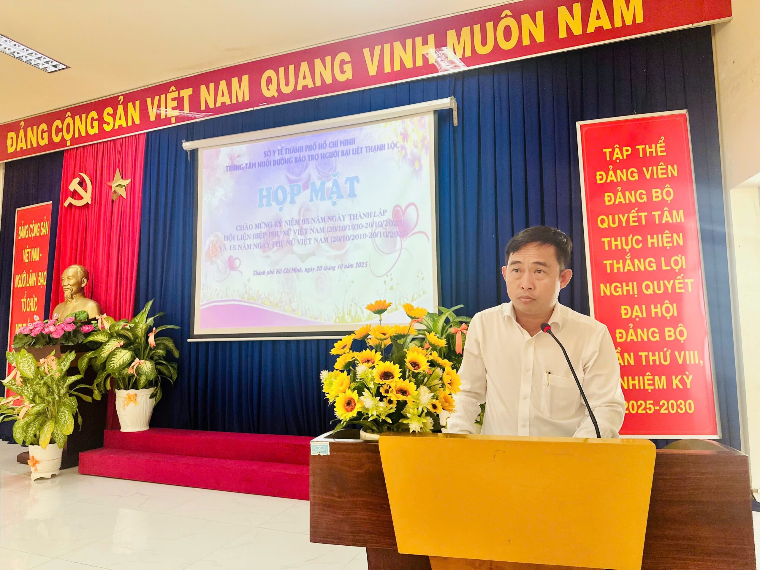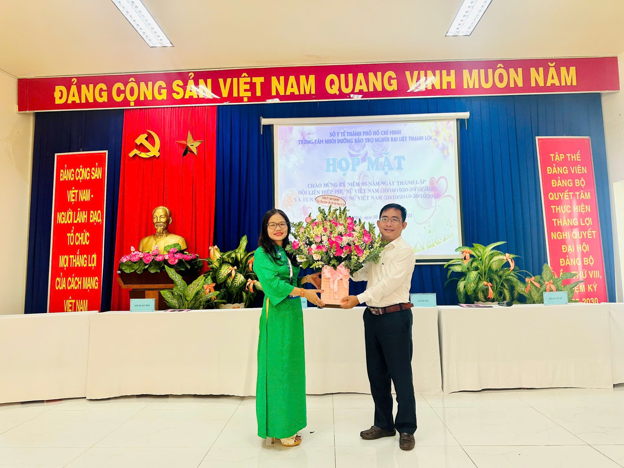 Thực hiện Công văn số 62-CV/ĐUTL ngày 02 tháng 10 năm 2025 của Đảng ủy Trung tâm Nuôi dưỡng bảo trợ người bại liệt Thạnh Lộc về lãnh đạo thực hiện “Tháng cùng phụ nữ hành động”, sáng ngày 20/10/2025 Trung tâm Nuôi dưỡng bảo trợ người bại liệt Thạnh Lộc tổ chức các hoạt động kỷ niệm 95 năm ngày thành lập Hội Liên hiệp Phụ nữ Việt Nam (20/10/1930 – 20/10/2025) và 15 năm ngày Phụ nữ Việt Nam (20/10/2010) với các chương trình thiết thực và bổ ích đến toàn thể Viên chức, người lao động đang công tác tại Trung tâm.