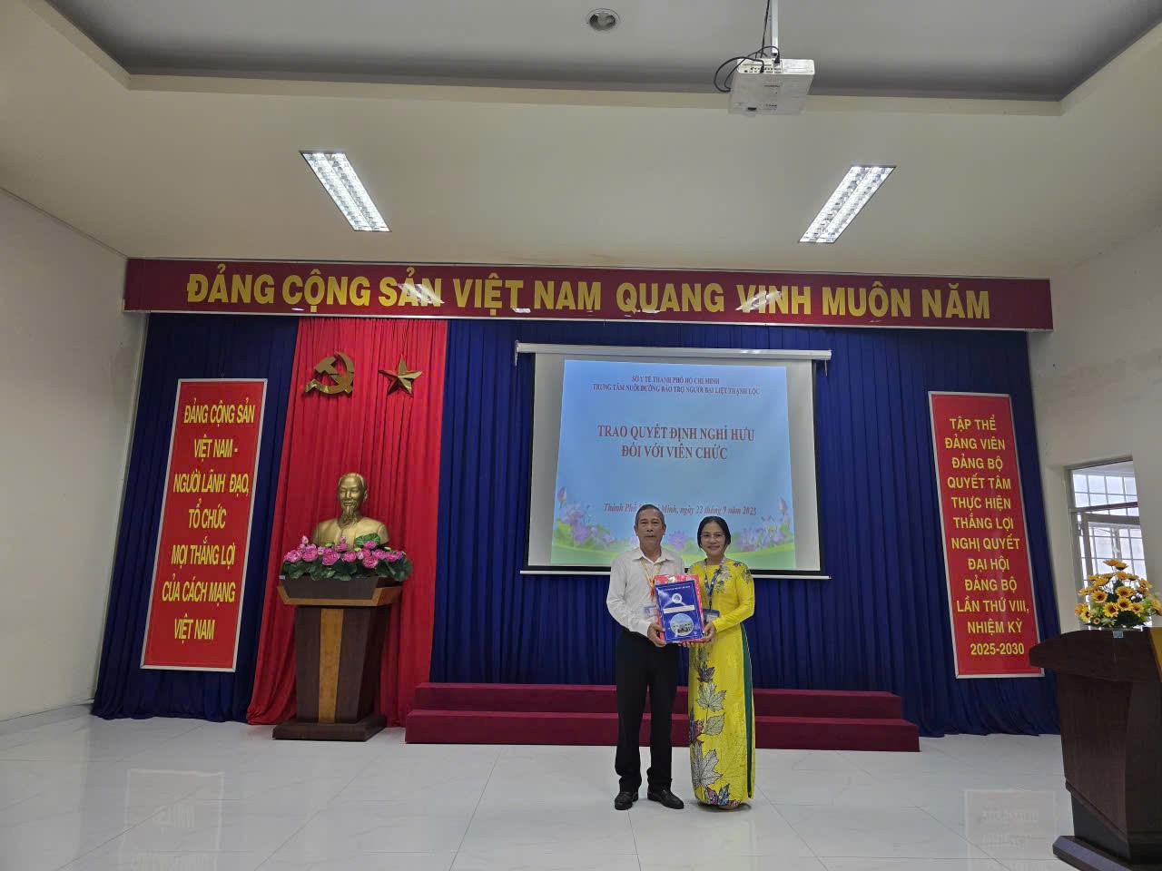 Hôm nay ngày 22/9/2025, Trung tâm Nuôi dưỡng bảo trợ người bại liệt Thạnh Lộc tổ chức Lễ trao Quyết định nghỉ hưu đối với ông Đinh Quang Hào – Y sỹ Trạm y tế.