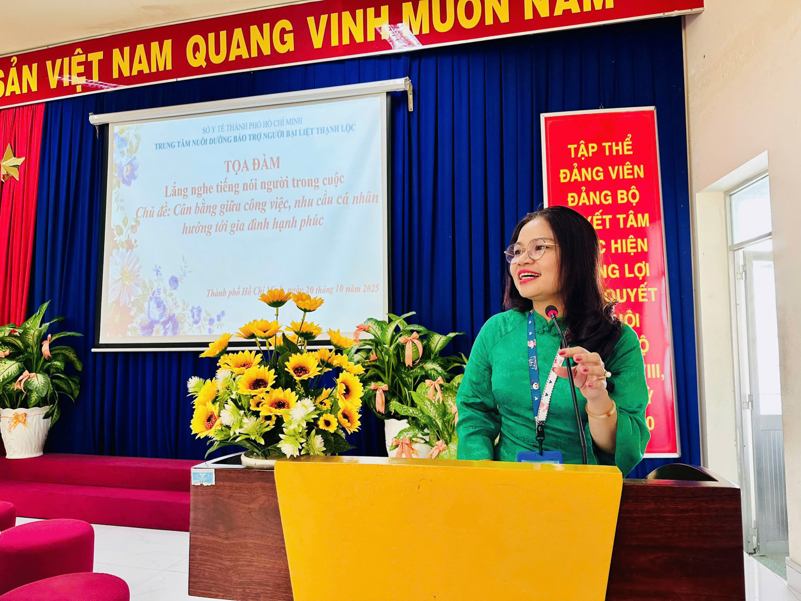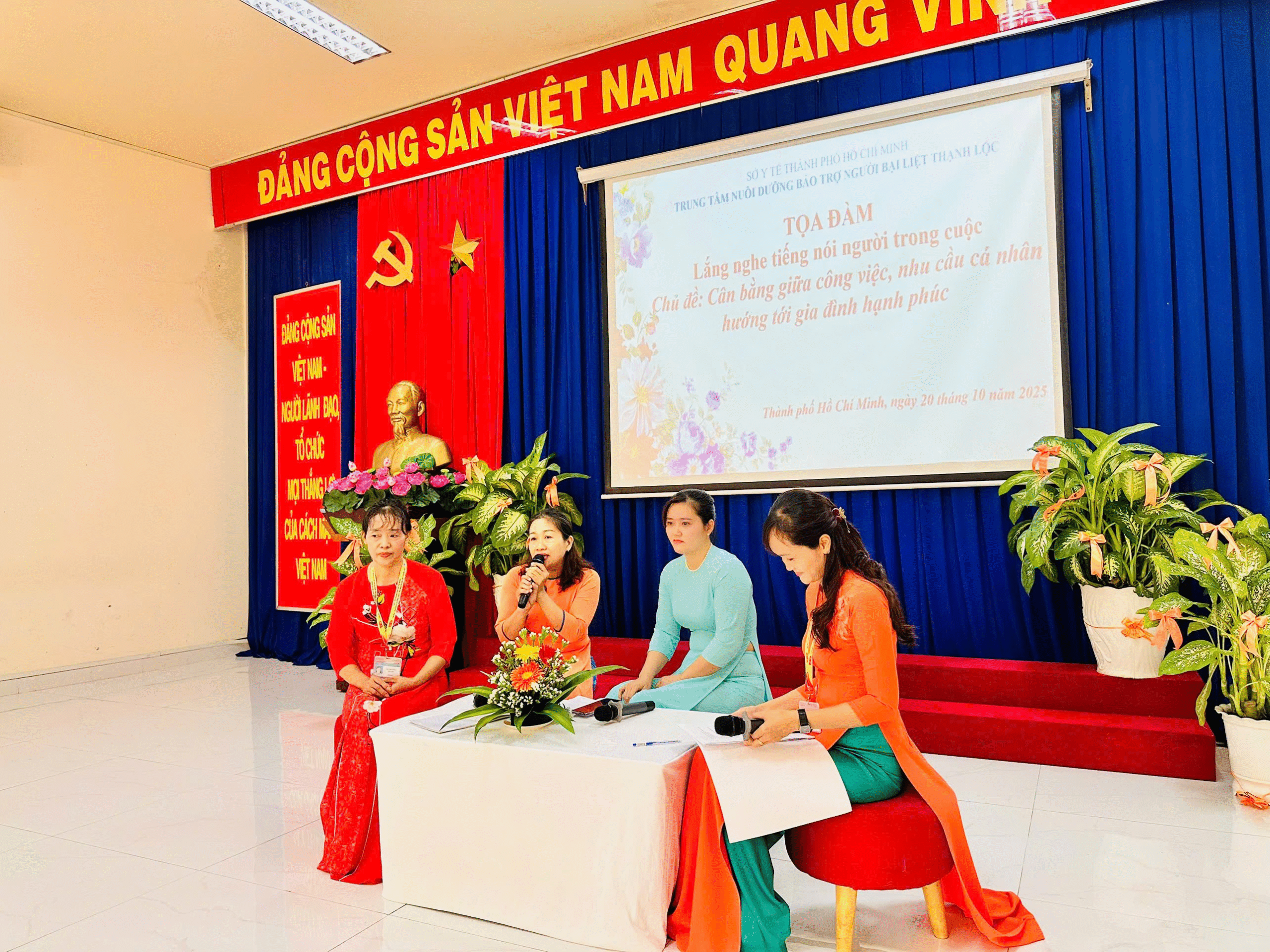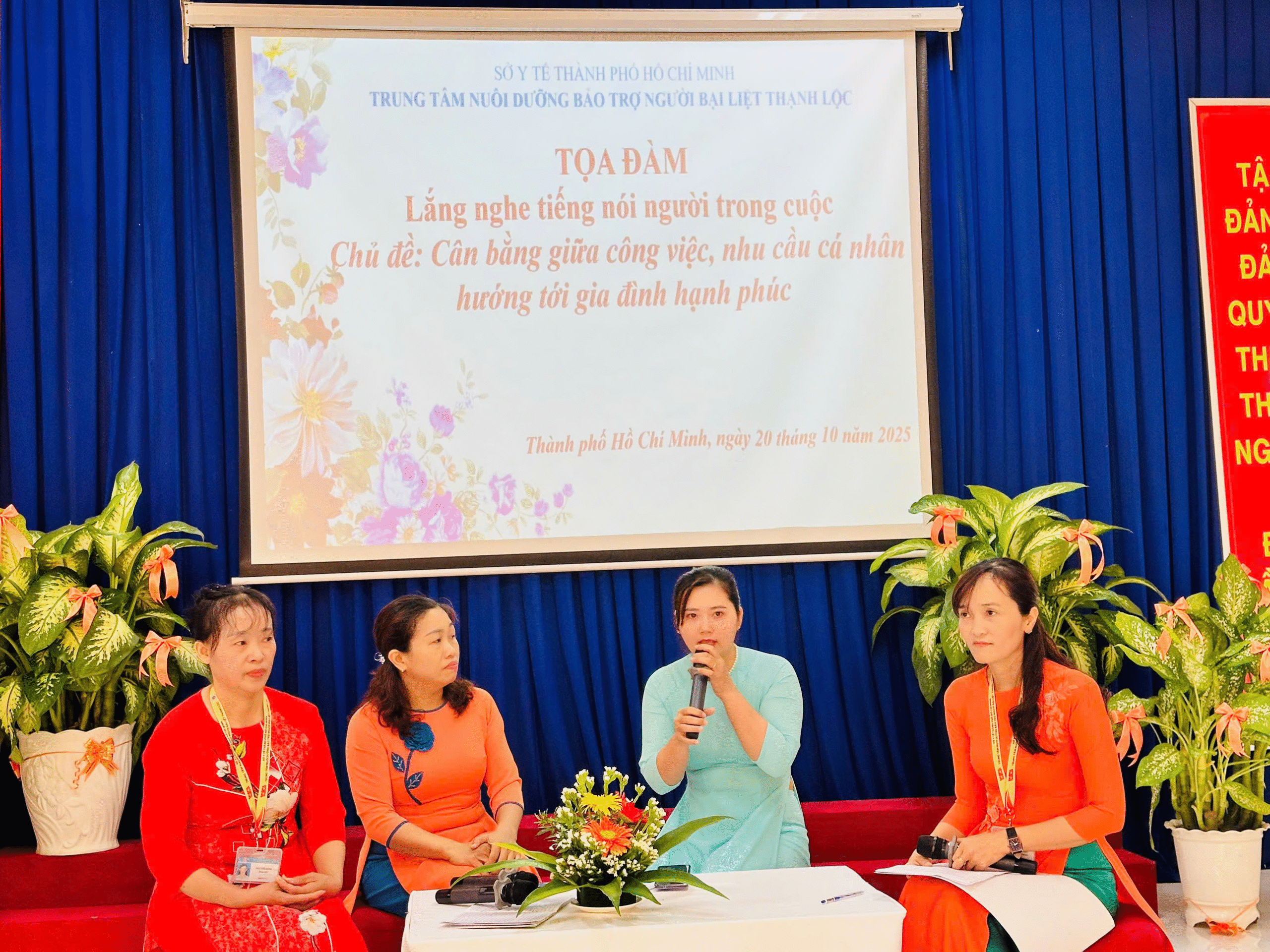 Gia đình luôn được xem là nền tảng của xã hội. Một gia đình hạnh phúc không chỉ mang lại sự bình yên cho mỗi cá nhân mà còn góp phần tạo nên một xã hội vững mạnh và phát triển. Tuy nhiên, trong nhịp sống hiện đại ngày nay, với áp lực công việc ngày càng gia tăng, nhu cầu phát triển bản thân ngày càng lớn, nhiều người trong chúng ta đang phải đối mặt với thách thức: Làm sao để cân bằng giữa công việc, nhu cầu cá nhân và chăm lo cho tổ ấm gia đình. Thấu hiểu những trăn trở đó. Sáng ngày 20/10/2025, Trung tâm Nuôi dưỡng bảo trợ người bại liệt Thạnh Lộc tổ chức tuyên truyền nâng cao nhận thức về bình đẳng giới, phòng ngừa, ứng phó với bạo lực trên cơ sở giới, kết hợp tọa đàm giao lưu với chủ đề: “Cân bằng giữa công việc, nhu cầu cá nhân hướng tới gia đình hạnh phúc”.