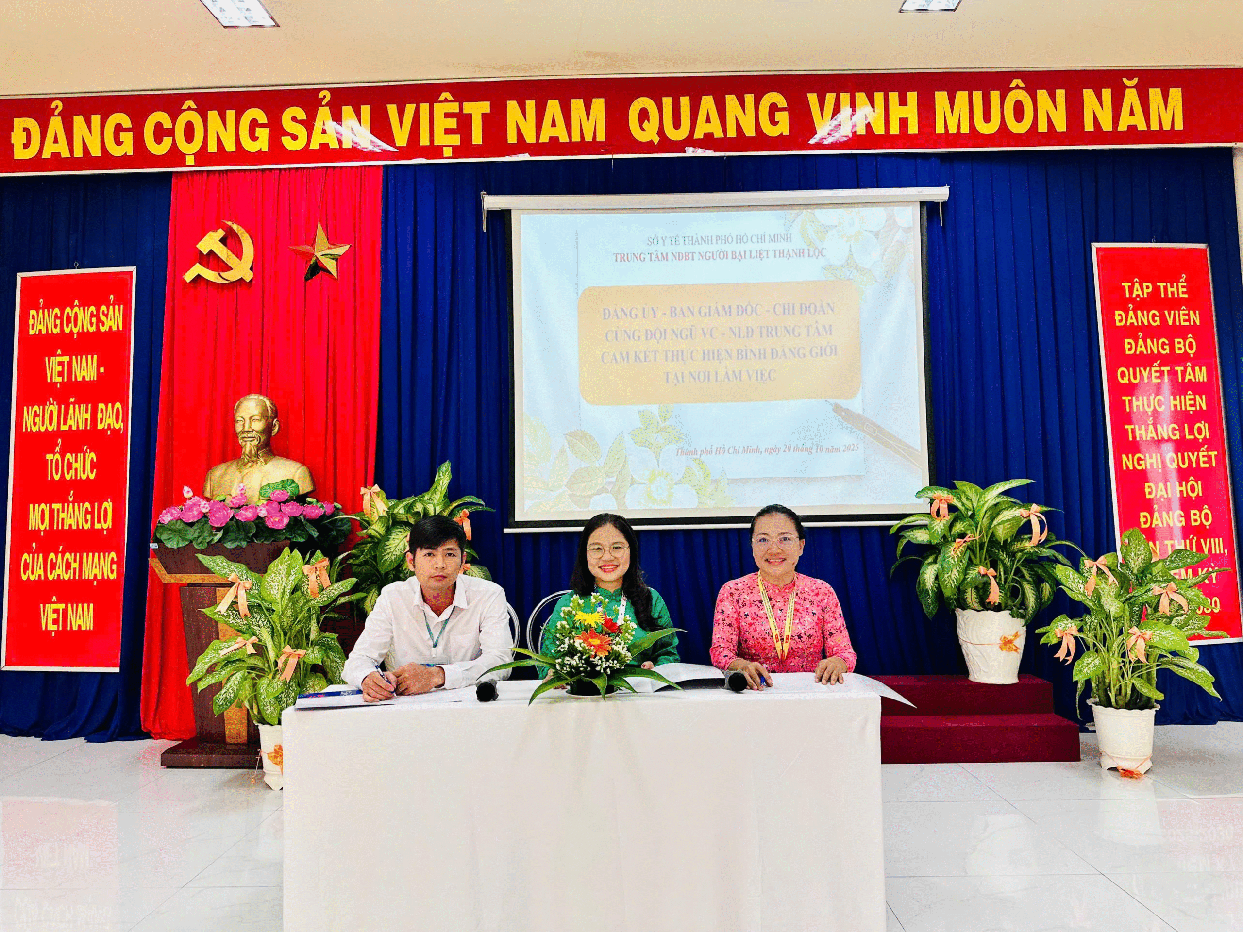 Tại Hội nghị, đại diện Đảng ủy, Ban Giám đốc Trung tâm và Chi đoàn đã ký Cam kết thực hiện Bình đẳng giới tại nơi làm việc.